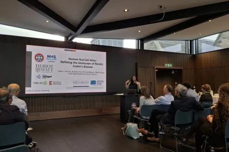 Presentation delivered at the Crohn's Future Meeting on 22nd-23rd January 2025 Dr. Shahida Din gave a talk on the Edinburgh Helmsley Gut Cell Atlas project, to the Crohn's Future Meeting at the Edinburgh Futures Institute, held on 22nd-23rd January 2025, entitled " Gut Atlas Project - defining the landscape of fibrotic Crohn's disease". Dr Shahida Din presenting at the Crohn's Futures Meeting (1) Dr Shahida Din presenting at the Crohn's Futures Meeting (2) Document Crohn's Futures Programme for 22nd-23rd January 2025 (180.11 KB / PDF) Publication date 11 Feb, 2025